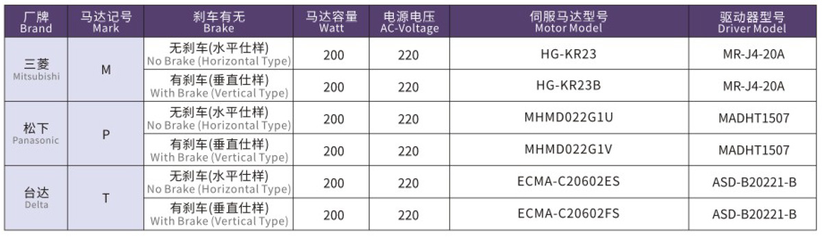 搭配伺服马达一览表